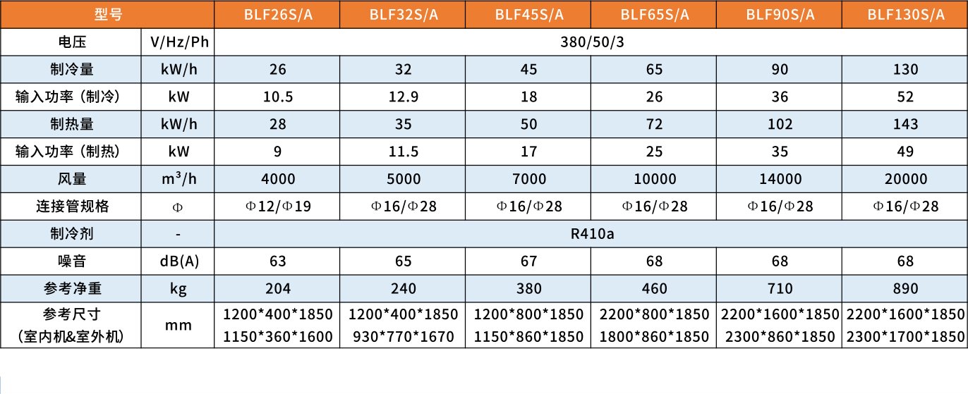 Denna enhet har en design av delad typ, med ett golvstående inomhusskåp och en utomhusenhet som består av en eller flera utomhusmoduler. Den finns i två huvudmodeller: enkel kylning och kylning & värme. Kyl- & värmemodellen kan som tillval utrustas med extra elvärme. Med överlägsen prestanda, lågt ljud, enkel installation och tillförlitlig drift, kan alla enheter också anslutas till ett fjärrövervakningssystem med automatisk feldetektering och larmfunktioner.